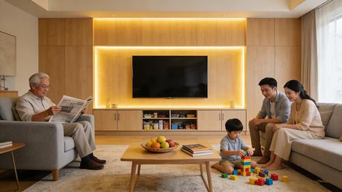 电视墙按照某种方式装修,会让全家人都乐意待在客厅